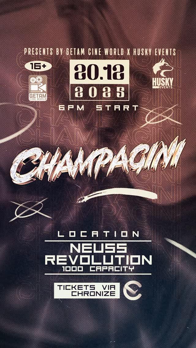 Celebrate the end of 2025 at CHAMPAGINI! Join 1000 people in NRW for 5 artists, 4 DJs & an epic Afro & Tamil beats party on Dec 20. 16+. Doors 6 PM. Get exclusive tickets on Chronize now!