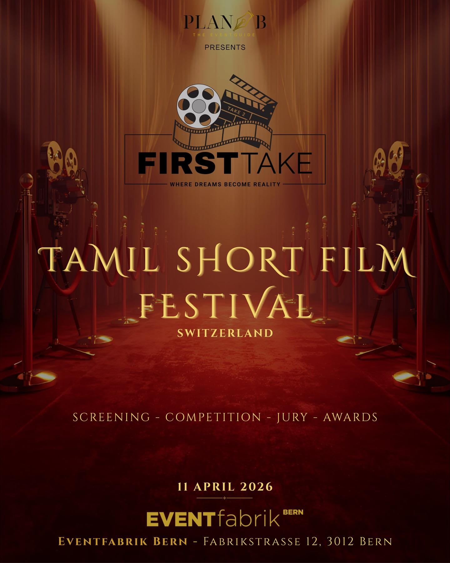 FIRST TAKE 2026 lanceres i Bern, Schweiz. En rød løber tamilsk kortfilmfestival med international jury, priser, VIP-adgang og kuraterede filmvisninger.